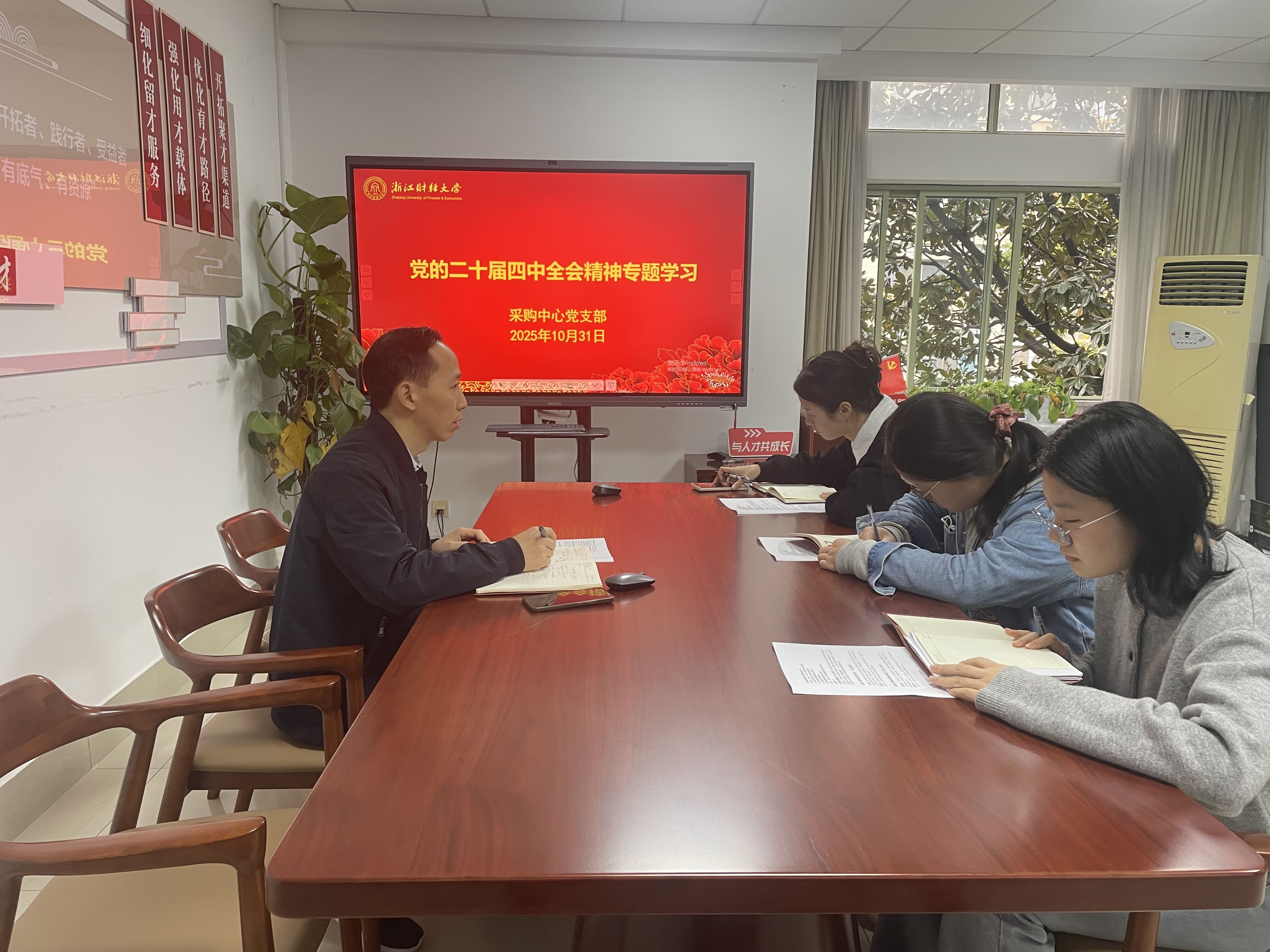 近日,采购中心党支部召开专题学习研讨会,聚焦党的二十届四中全会精神核心要义,围绕政府采购与招投标领域改革部署、全国统一大市场建设要求等重点内容,组织支部全体党员开展集中学习与研讨。党支部书记主持会议并领学全会精神,支部全体党员参加学习。
